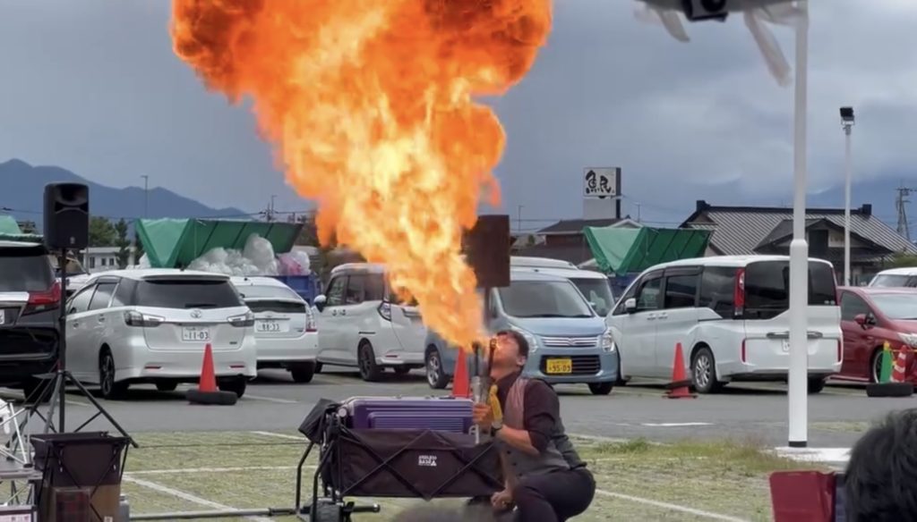 今回、屋外のパフォーマンスということで屋内ではできないファイヤーを使用した演目も披露させていただきました。